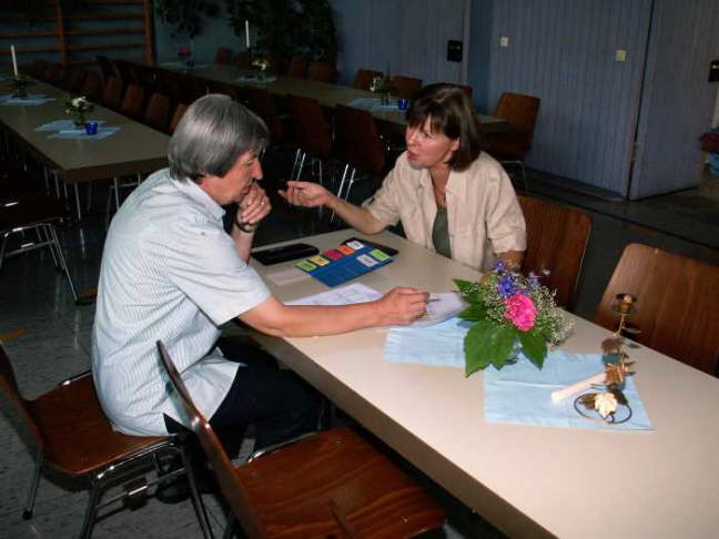 Noch letzte Vorbereitungsgespräche für den Bedienungseinsatz der dazu eingeteilten aktiven Sängerinnen und Sänger