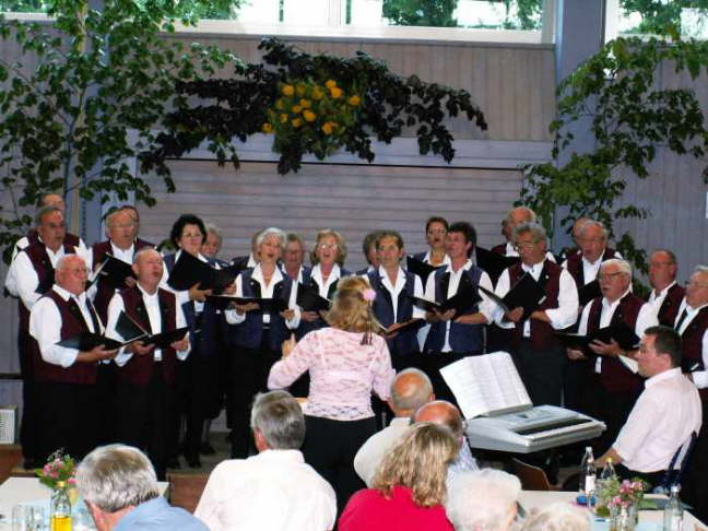 Derweil hat der Liederkranz Hildrizhausen mit seiner Dirigentin Marie-Madeleine Ebner seinen ersten Auftritt am heutigen Abend