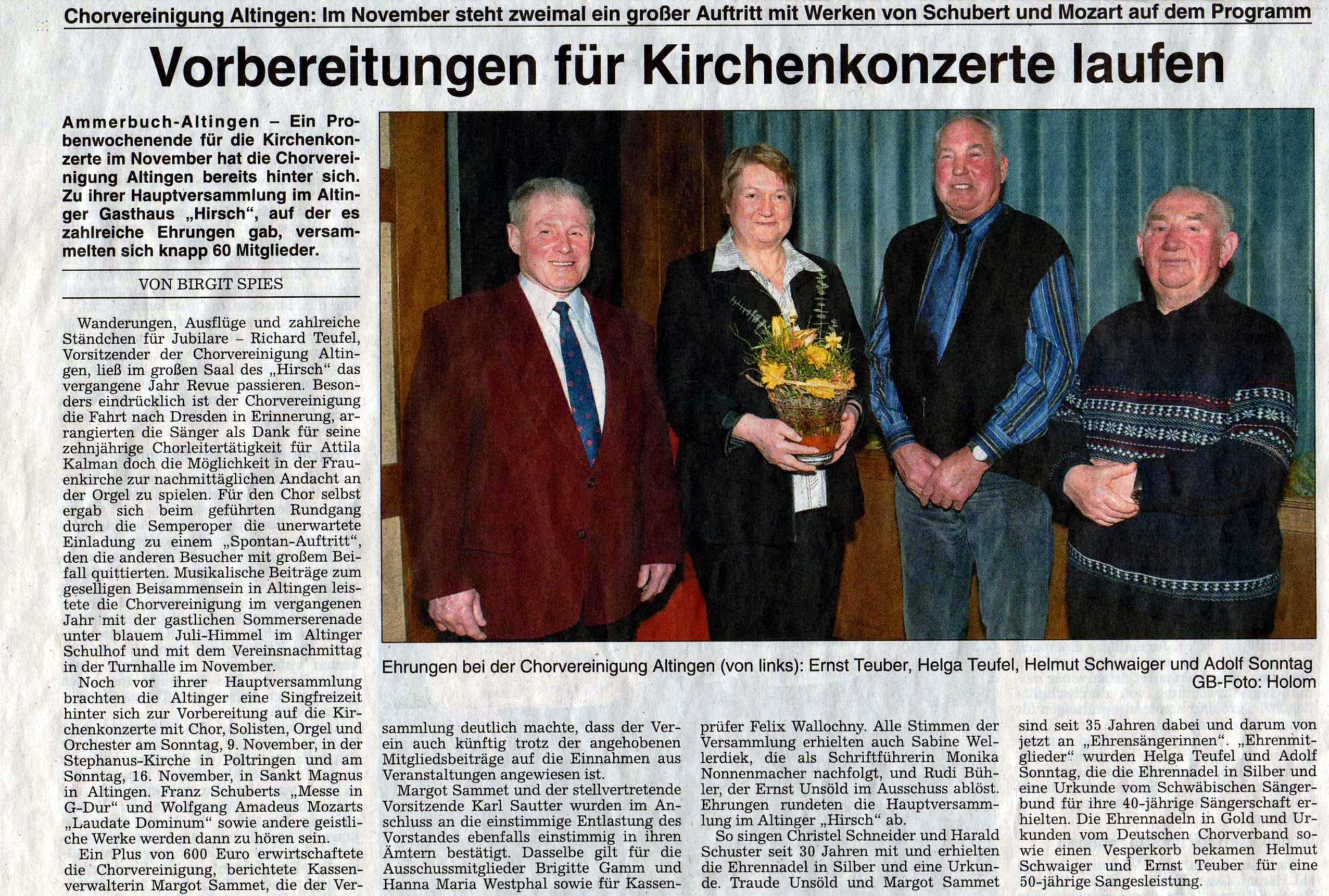 Vorankündigungen:Gäubote am 11.11.2011 Schwäbisches Tagblat am 11.11.2011Konzert am 12.12.2011Schwäbisches Tagblatt am 14.11.2011Gäubote am 15.11.2011